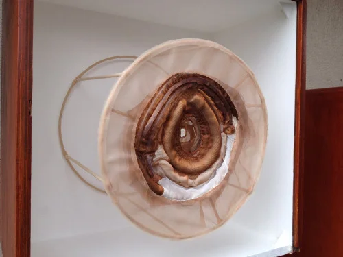 Artist Statement: This body of work includes abstract fabric sculptures. Mapping time and growth has been an important theme in my work. Organic forms in nature influence these sculptures, made with various opaque and translucent fabrics, which investigate branching out and regenerating new growth.